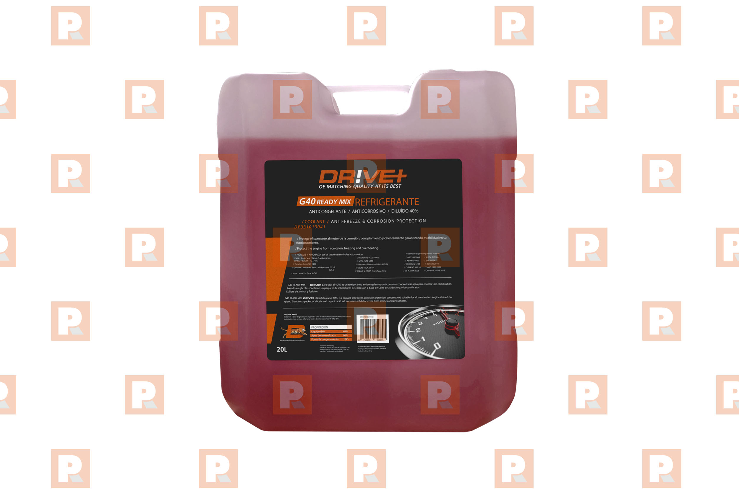 Refrigerante, anticongelante y anticorrosivo Drive+ concentrado, apto para motores de combustión basado en glicoles. Debe ser diluido con agua destilada previo a su uso. Es libre de nitrito, aminas y fosfatos. Protege las partes vitales del motor, tales como canales de block, radiadores y bombas de agua, de corrosión, sobrecalentamiento y congelamiento.
